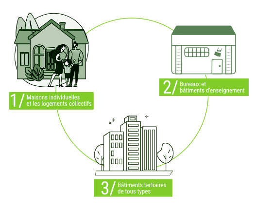 - les premiers projets et chantiers concernés : les maisons individuelles et les logements collectifs,